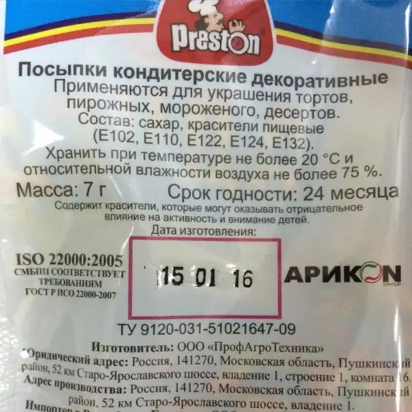 "Краситель красный очаровательный, который может оказывать отрицательное влияние на активность и внимание ДЕТЕЙ"