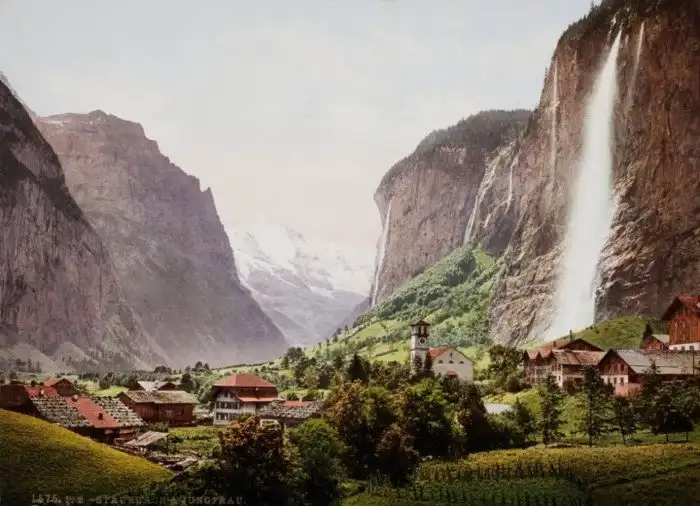 Водопад Штауббах, Лаутербруннен, Швейцария, около 1900 года.