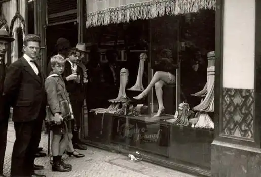 Живая реклама в витрине магазина женских чулок. Берлин. 1927 год.