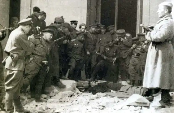 Советские солдаты возле убитого двойника Гитлера