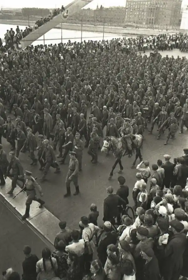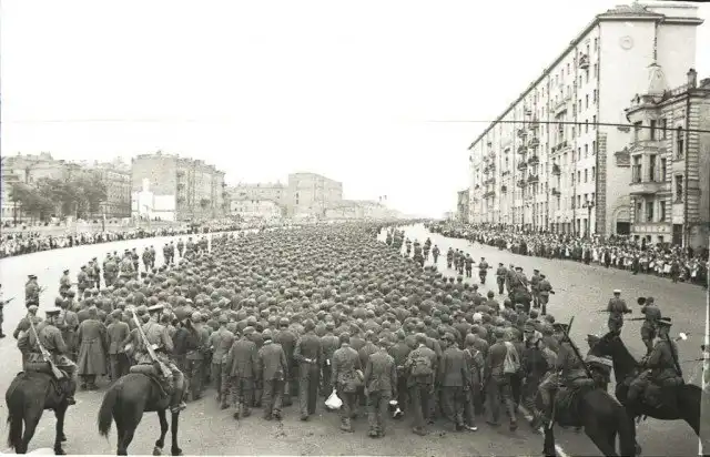 Марш пленных немцев по Москве (также «Парад побеждённых», операция «Большой вальс») состоялся в понедельник 17 июля 1944 года. Колоннами по Садовому кольцу и другим улицам столицы прошли около 57 000 немецких солдат и офицеров, в основном захваченных в плен в Белоруссии войсками 1-го, 2-го и 3-го Белорусского фронтов.В ходе операции «Багратион» летом 1944 года была разгромлена немецкая группа армий «Центр». Были уничтожены или попали в плен около 400 000 солдат и офицеров. Эти потери были намного выше сталинградских. Из 47 генералов Вермахта, воевавших в качестве командиров корпусов и дивизий, 21 был взят в плен.