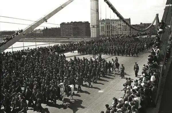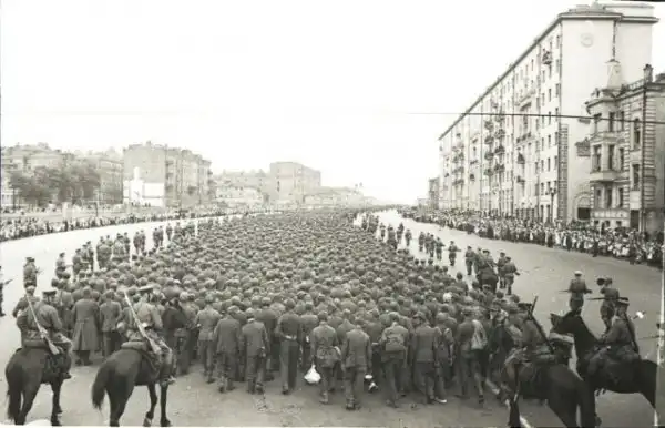 Колонны сопровождали всадники с обнаженными шашками и конвоиры с винтовками наперевес. За пленными следовали поливальные машины, символически отмывая землю от «гитлеровской нечисти». «Парад» закончился к семи часам вечера, когда все пленные разместились по вагонам и были отправлены в места заключения. Четырём пленным, отставшим от колонны, была оказана медицинская помощь.