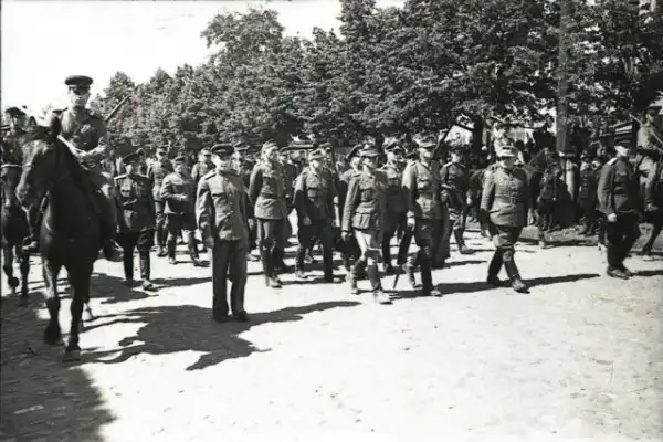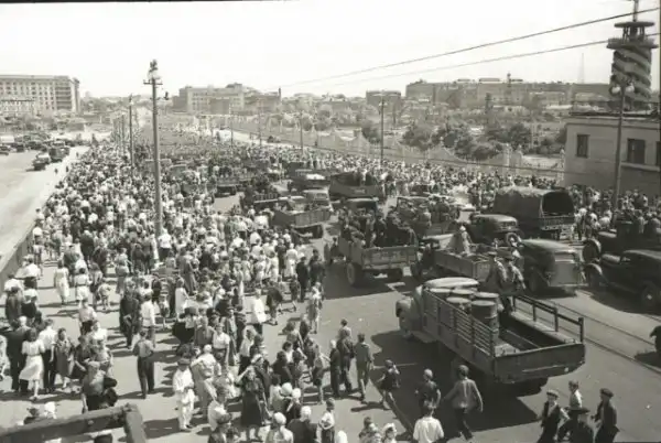 К 11 часам утра 17 июля пленных разделили на две группы и построили в соответствии со званием по 600 человек (20 человек по фронту). Руководил прохождением колонн командующий войсками МВО генерал-полковник П. А. Артемьев.