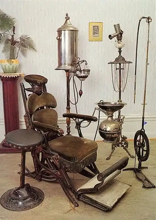 Многие считают походы к стоматологам далеко не самыми приятными процедурами, а некоторые даже боятся всего того, что ждет их в кабинете стоматолога. Фото, которые вы найдете далее, покажут, что нам с вами еще очень сильно повезло, так как раньше стоматологические кабинеты со своими причудливыми инструментами прошлых лет были похожи на настоящую комнату пыток.