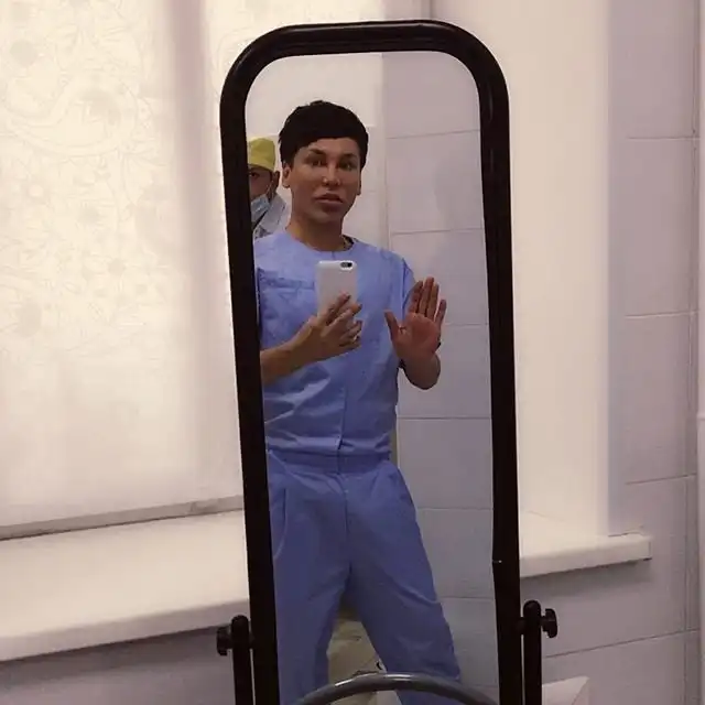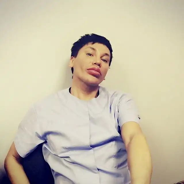 Это успешный челюстно-лицевой хирург из Дальневосточного государственного медицинского университета теперь работает в Москве.Он из обычных девушек делает мукл. Ну и не смог он не сделать муклу из себя. Ну а как иначе? В мире губастых кис нужно быть губастой кисой!