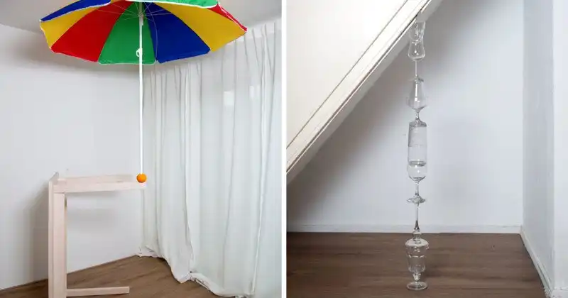 Венгерская художница Сцилла Кленьянски живет в Амстердаме с маленьким сыном. Она занимается скульптурой, но ее работы совершенно не похожи на те, что можно увидеть в музеях. Она называет их "домашними колоннами". Это - пирамиды из самых обычных предметов, стоящие враспор между полом и потолком и удерживающиеся лишь благодаря точному равновесию, найденному художницей. Несмотря на свою простоту, воздушные конструкции просто завораживают.