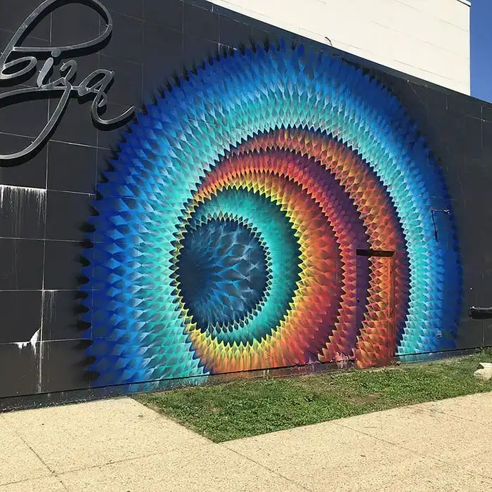На стенах различных зданий в Майами можно встретить работы уличного художника Дугласа Хокзема (Douglas Hoekzema), которые вы точно не спутаете с рисунками других художников. Дуглас рисует в свойственном лишь ему одному стиле, изображая яркие психоделические рисунки, напоминающие картинки в калейдоскопе. Несмотря на масштабность своих работ, художник уделяет большое значение детализации, в результате чего все это выглядит просто потрясающе.