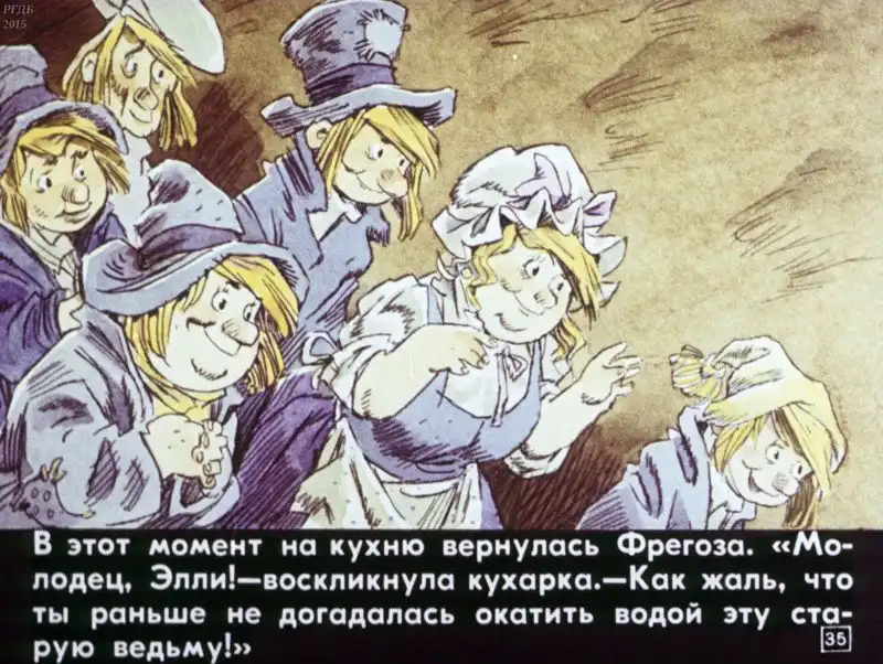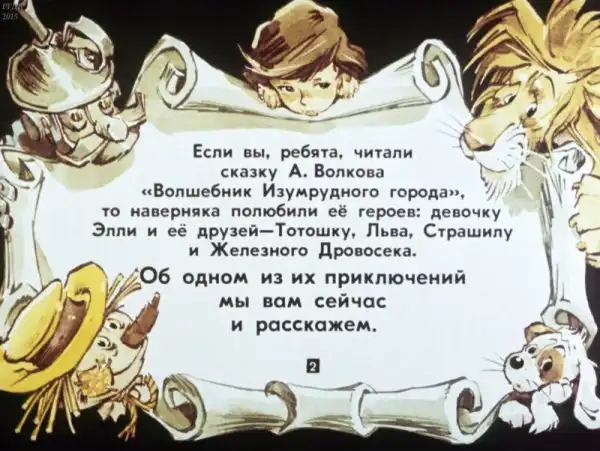 В этом диафильме по сказке Александра Волкова использованы иллюстрации великолепного художника Евгения Мигунова. Ещё один привет из детства.
