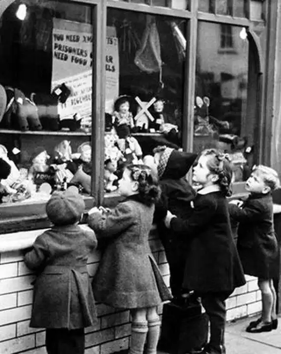 Дети у витрины кондитерской лавки. Вторая мировая. Лондон. 1940-е