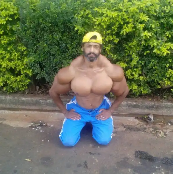 Этого уже немолодого мужчину зовут Валдир и он является синтоловым качком. Валдир не мог добиться желаемых результатов с помощью тренировок и диеты, а потому решился на крайние меры. Теперь мужчина полностью доволен своим внешним видом, хотя большинство окружающих впадают в ступор, когда видят перед собой нечто подобное.