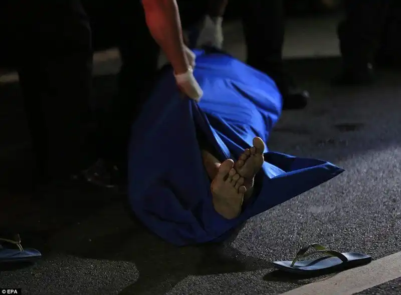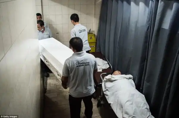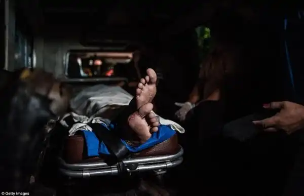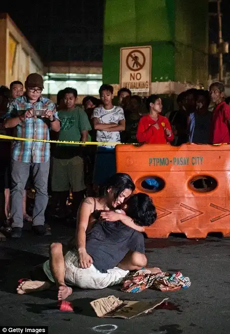 Жены и родственники убитых рыдают над безжизненными телами их близких, застреленных в ходе карательных полицейских операций без суда и следствия.