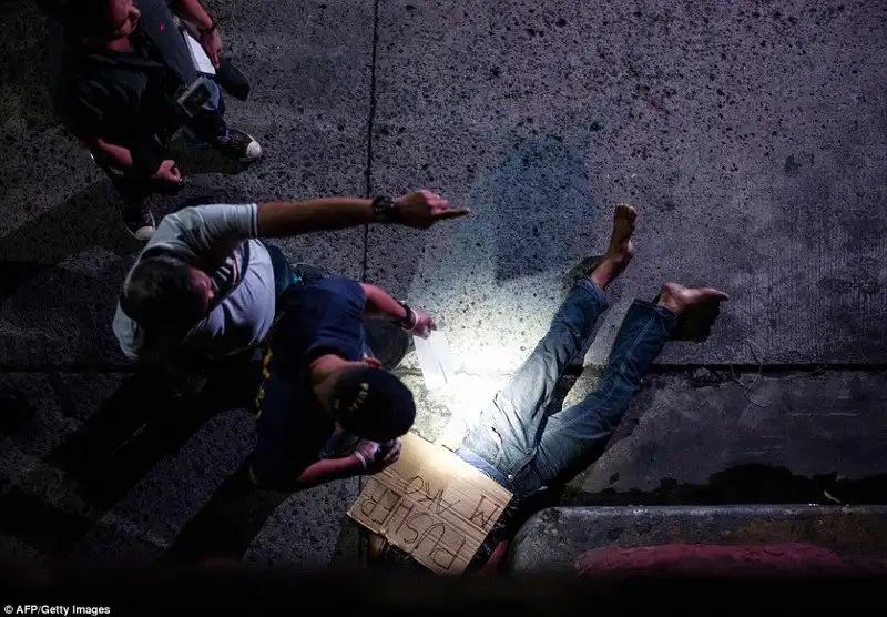 Бездомные дети спят на кусках картона посреди улицы, а вокруг них творится хаос.