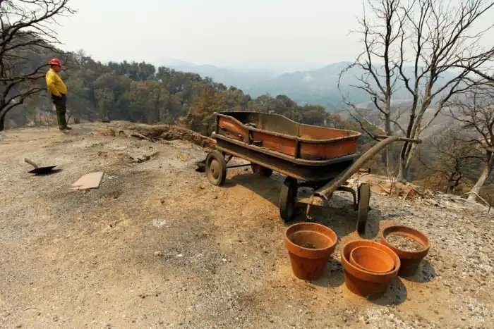 Чтобы показать ущерб, нанесенный масштабными лесными пожарами Калифорнии, американский фотограф Майкл Фиала (Michael Fiala) побывал в районе Пало Колорадо. Все эти снимки были сделаны 31 июля и показывают то, что оставил после себя огонь.