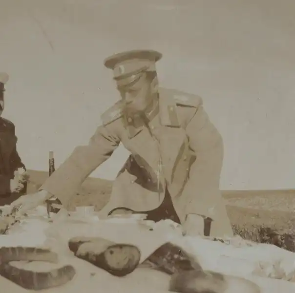 Николаев, завод " Руссуд ".Император Николай II сходит с ПЛ " Нарвал ". На 2-м плане корпус спущенного на воду ЛК " Император Александр III ".