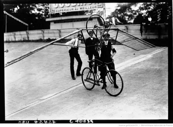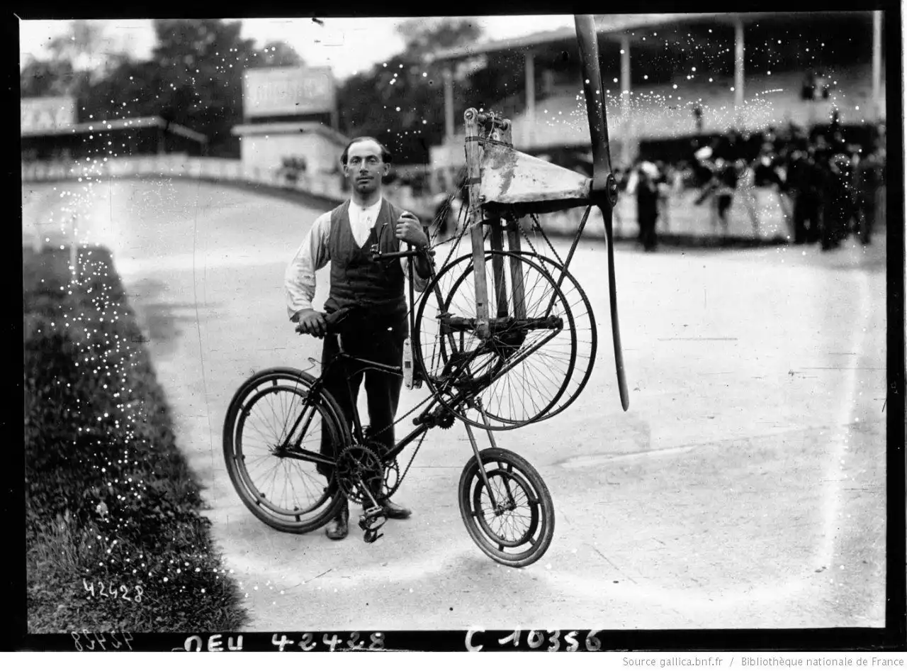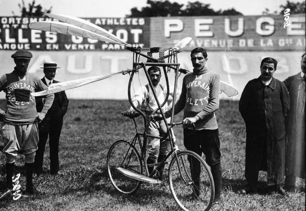 Серия фотографии сделанных во время проведения конкурсов летающих велосипедов. Франция. 1912 год.