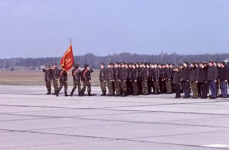 Церемония проводов 33-го гвардейского истребительного авиационного полка 16-й воздушной армии Западной группы войск, выводимого в Россию. Виттшток. ФРГ. Июнь 1993 года.