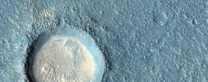 Кратер Впадина Цербера со слоями осадочных отложений.