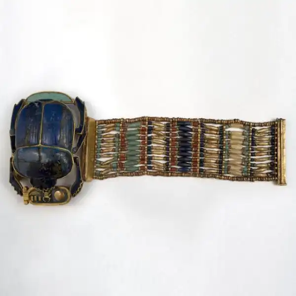 Золотой браслет, часть которого выполнена в виде скарабея, символа утреннего солнца.