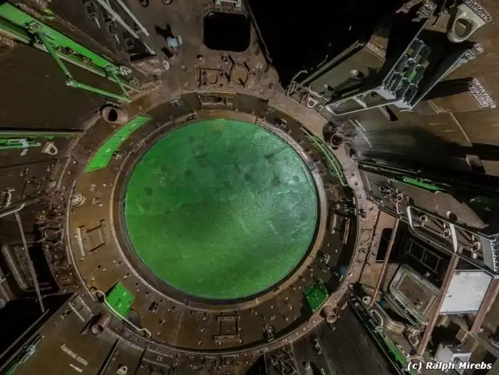 Спускаюсь на самое донце ракетной шахты. Под висящей капсулой навалено немного железяк, но вид открывается достаточно годный, да и угол объектива позволяет захватить капсулу целиком.