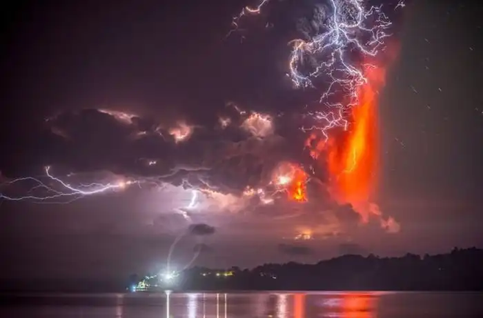 Перед вами чарующий снимок, ставший победителем международного конкурса HIPA 2016. На нем изображена молния, запечатленная во время извержения вулкана Кальбуко с Чили.