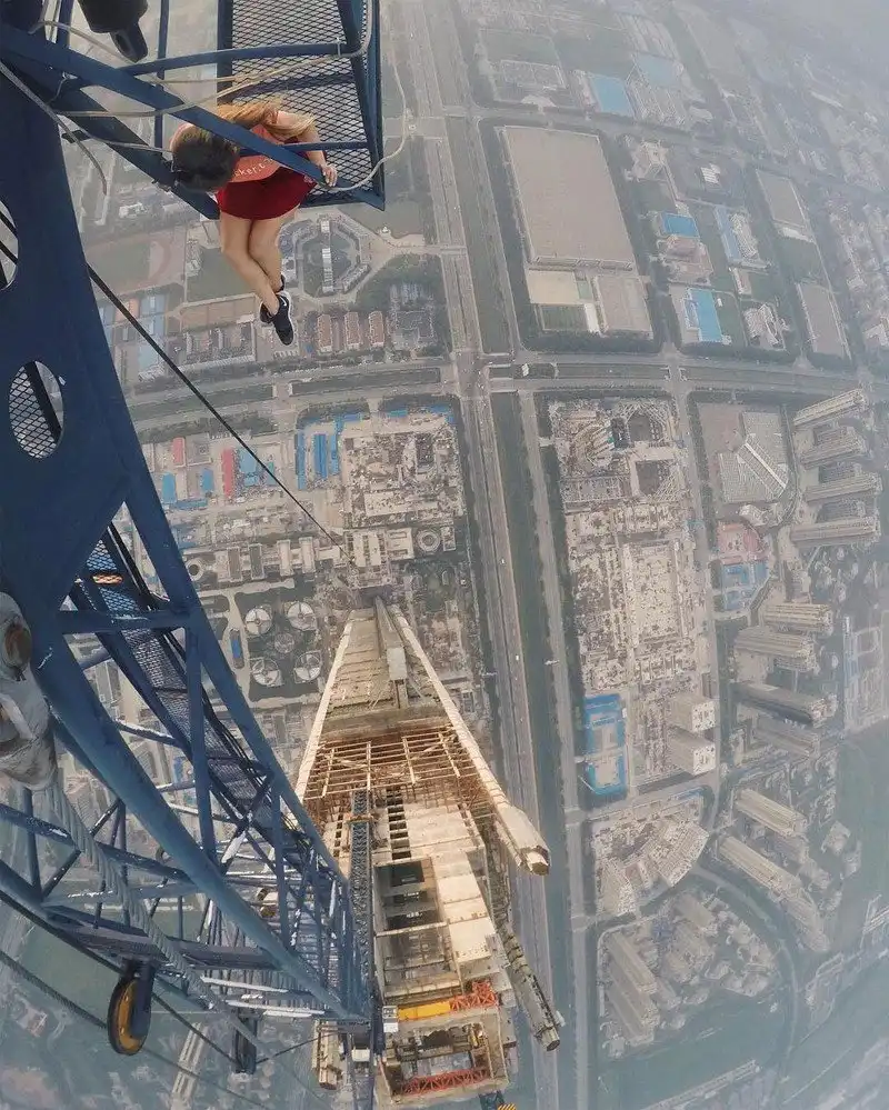 Русская девушка делает очень рискованные снимки на высоте в разных уголках мира