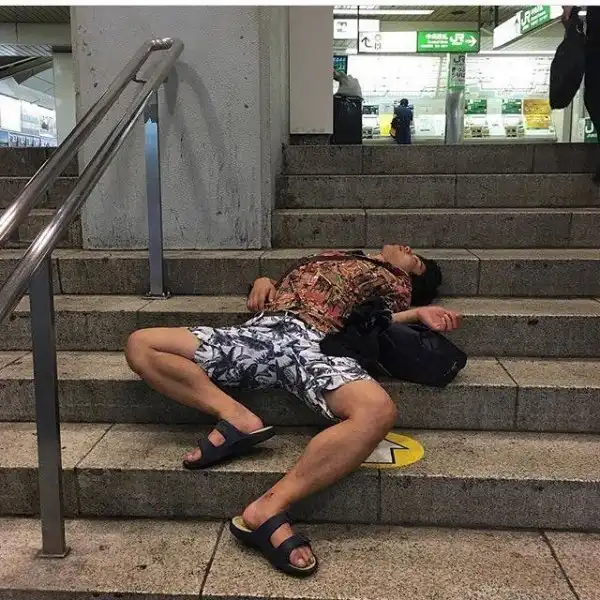 Сибуя - специальный район Токио, известный своей молодежной модой и ночной жизнью. Поэтому тут чаще, чем в остальных частях города, можно встретить вырубившихся граждан. В инстаграм-аккаунте @shibuyameltdown собрана целая коллекция подобных фото.