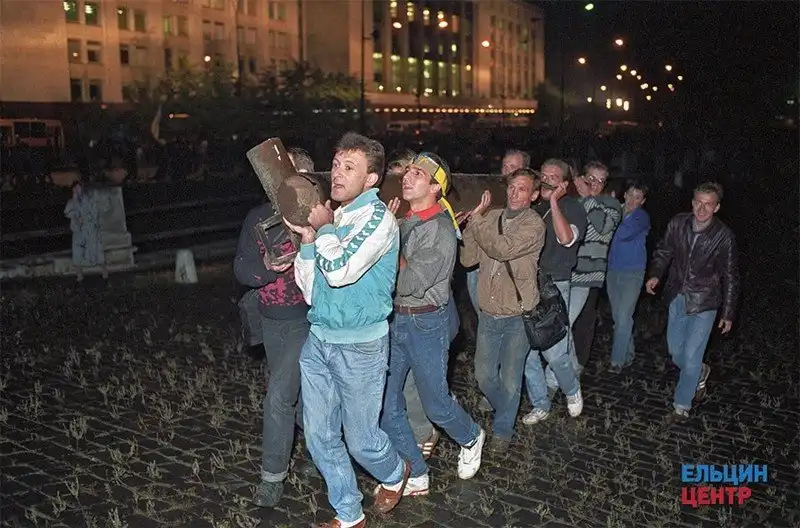 Строительство баррикад у здания Верховного Совета РСФСР.