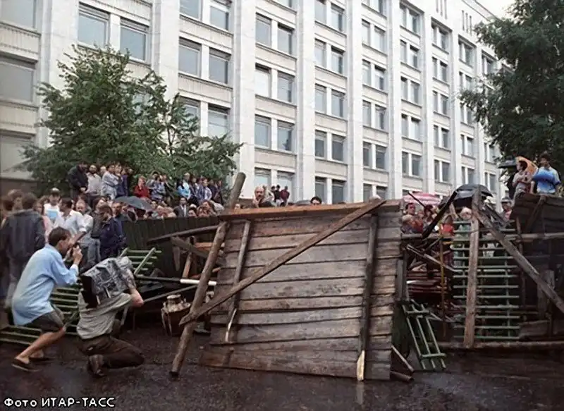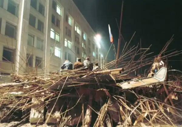 Баррикады у здания Верховного Совета РСФСР.