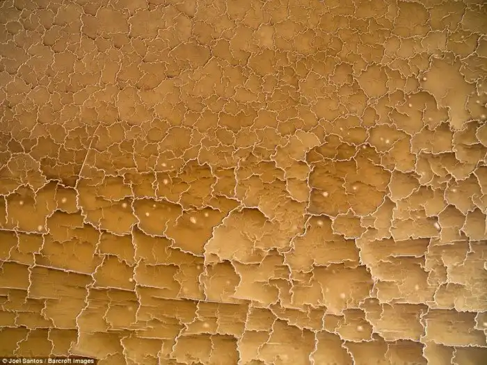 «Воздух такой сухой, что в пустыне ничем определенным не пахнет. Тем не менее возле некоторых затопленных участков можно почувствовать солоноватый аромат, если наклониться поближе к земле», — рассказывает фотограф.