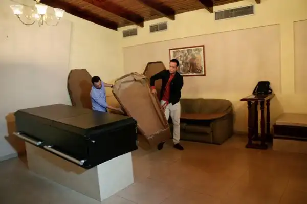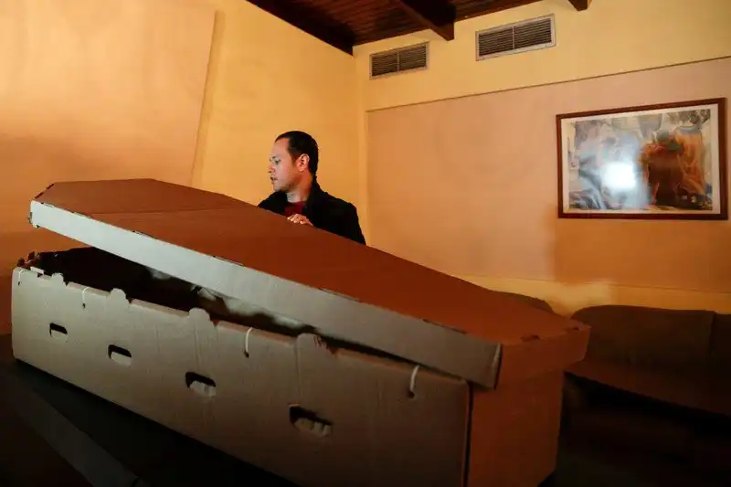 Предприниматели из Венесуэлы Алехандро Бланшар и Элио Ангуло решили делать картонные гробы, чтобы конкурировать с классическими деревянными. Из-за глубокого кризиса в стране их “био-гробы” становятся приемлемым вариантом из-за высокой цены на деревянные гробы.