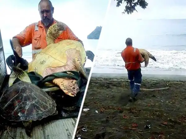 Мужчина покупает на рынке черепах и отпускает обратно в море