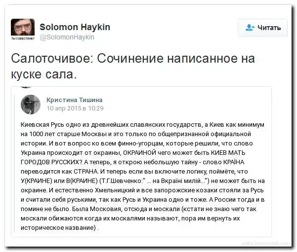 одного не пойму, ты реально аутист упоротый или косишь под него весьма умело, или тупо пытаешься гадить в уши в надежде встретить действительно имбецила достойного вашего "нод", другиx там нет по определению? Кто государство-то грабит? Американцы продают наше сырье и вместо развития на вырученные от него средства промышленности, производств, сх - тупо разграбляют их. Или американцы бюджет ежегодно составляют? Или мб они законы принимают в стране? Или это не наши олигархи володины дружки множатся с каждым годом? Министров тоже по всей видимости обамка назначает, а не царь-володя? Так в расчете на кого ты абсурд-то до такой степени несешь? Али и правда сам eбанутый?