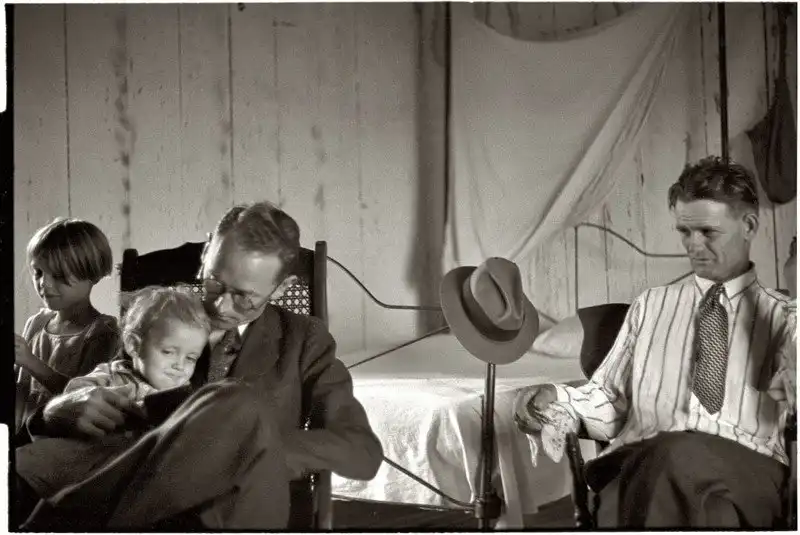 Ценность этой подборки не только в том, что автор фото - один крупнейших американских художников-реалистов прошлого века Бен Шан, но и в том, что она дает возможность увидеть воочию героев книг Стейнбека, Фолкнера, Фицджеральда - работяг, жителей глубинки.