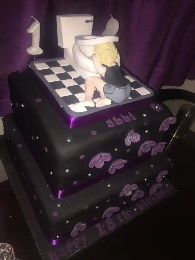 Эбби Прайс из британского города Ковентри отмечала свое 18-летие с довольно необычным тортиком. Дело в том, что девица накануне хорошо оттянулась с друзьями и полночи провела в обнимку с унитазом. На память об этом событии осталась фотография, которая и стала прототипом для десерта.