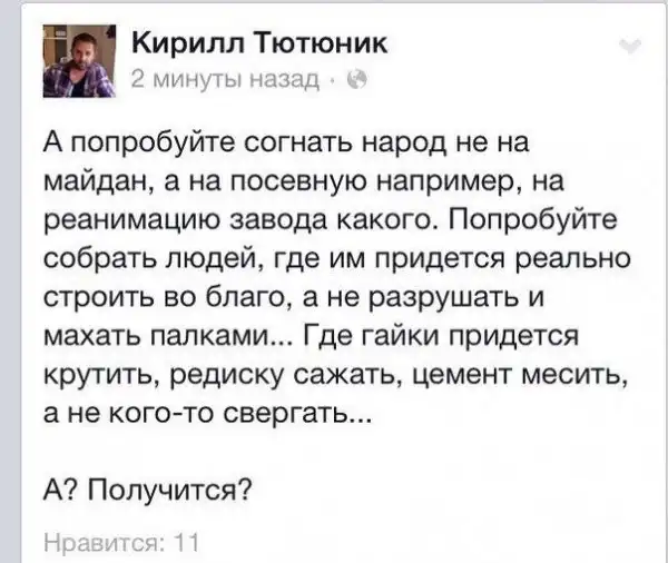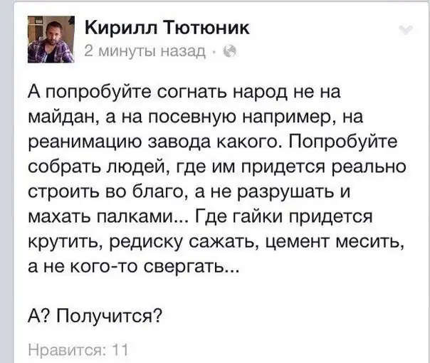 Ну на счет бетона мне кажется явный перебор. Как минимум пловина народу там вполне трезво оценивают ситуацию и понимают, что вся эта бодяга произошла из-за нескольких мудаков, пришедших к власти в том числе при непосредственной "дружеской" помощи дяди Сэма. А бетонировать я бы начал с Ющенко, потом Тимошенко, Турчинов, Тягнибок, Яценюк. Ну и Яныку тоже за воротник не мешало бы раствора налить за то, что такую страну просрал.