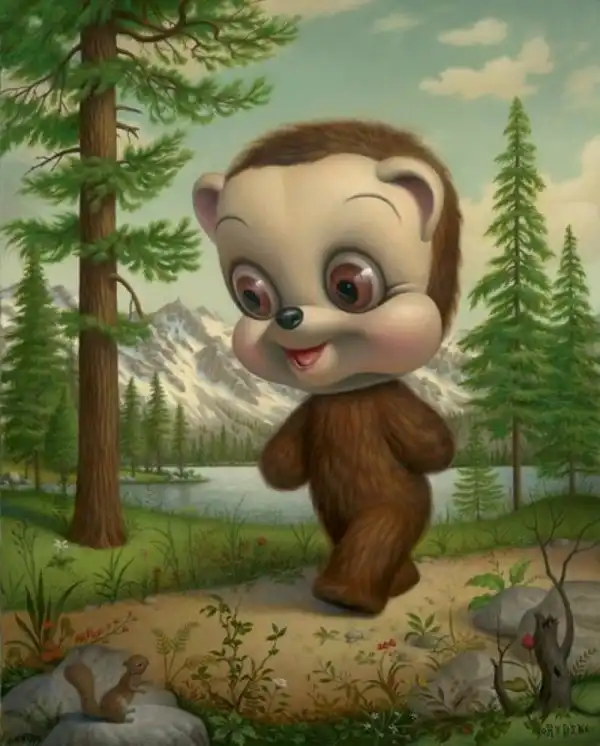 Райден пишет действительно странные картины, где еще можно увидеть настоящий микс из непонятно милых и жутковато-тревожных образов. Тонкое беспокойство обитает внутри его картин; работы болезненно красивы, они как бы намекают на темные глубокие психические вещи под поверхностной культурной китча.