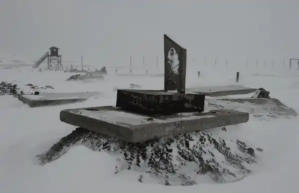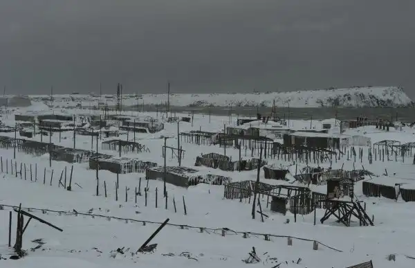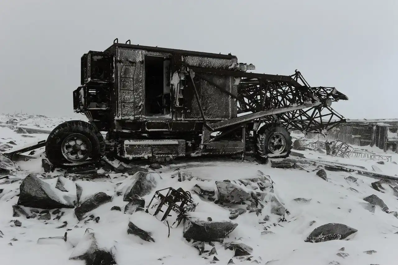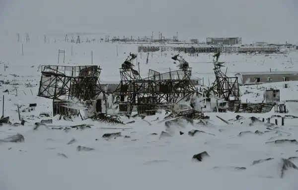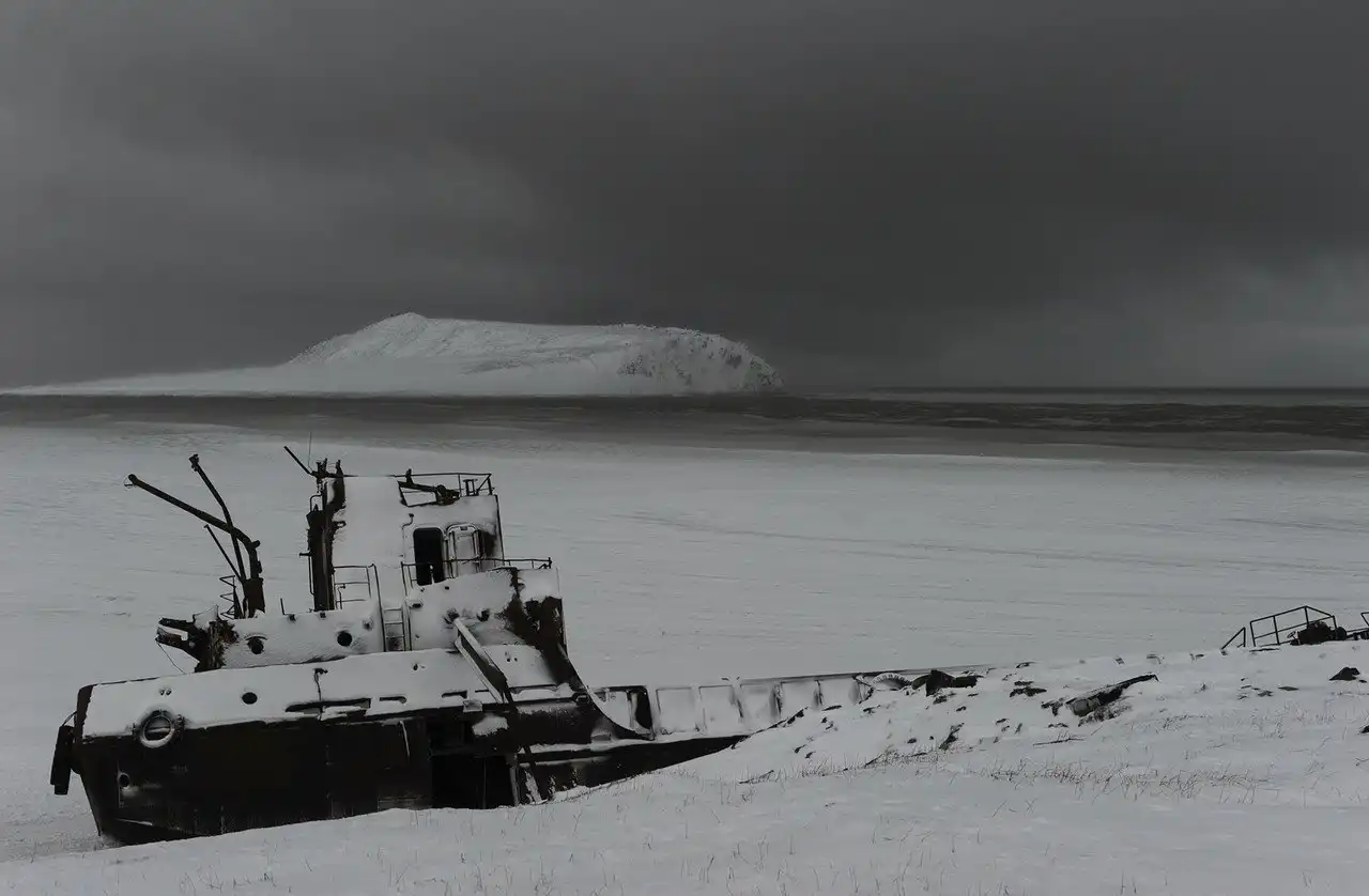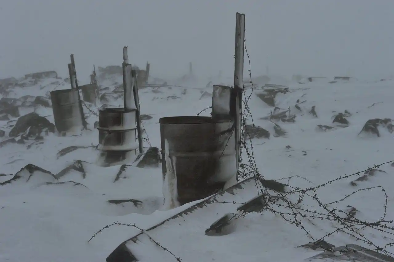 Мыс Шмидта, пурга. Списанные самолеты у взлетной полосы.