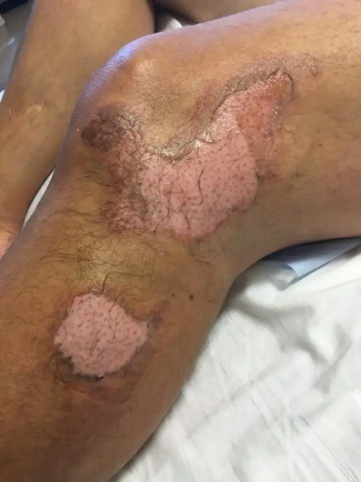 Во время поездки вагонетка застряла, и папашка решил убраться с трассы, чтобы не столкнуться с другими отдыхающими. Но из-за жары трасса раскалилась настолько, что он получил серьезнейшие ожоги рук и задницы.
