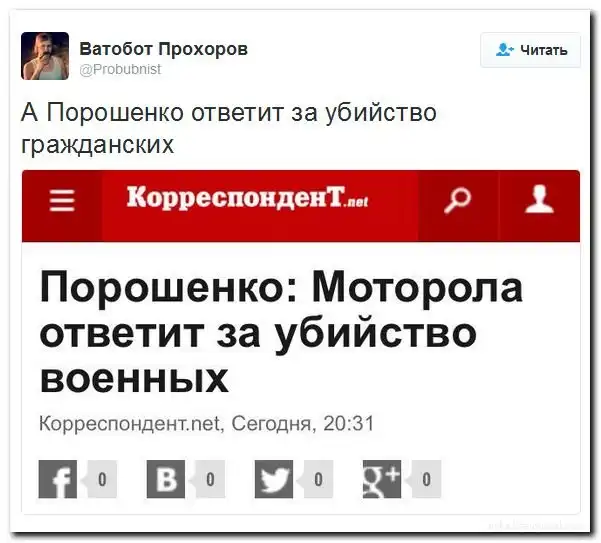 Хотя я в эту пропаганду Кремля не верю,есть море очевидцев которые как один утверждают,что человек похожий на самого Путина, дал залп из катюши и последняя все же ракета попала в героя.