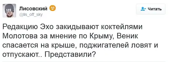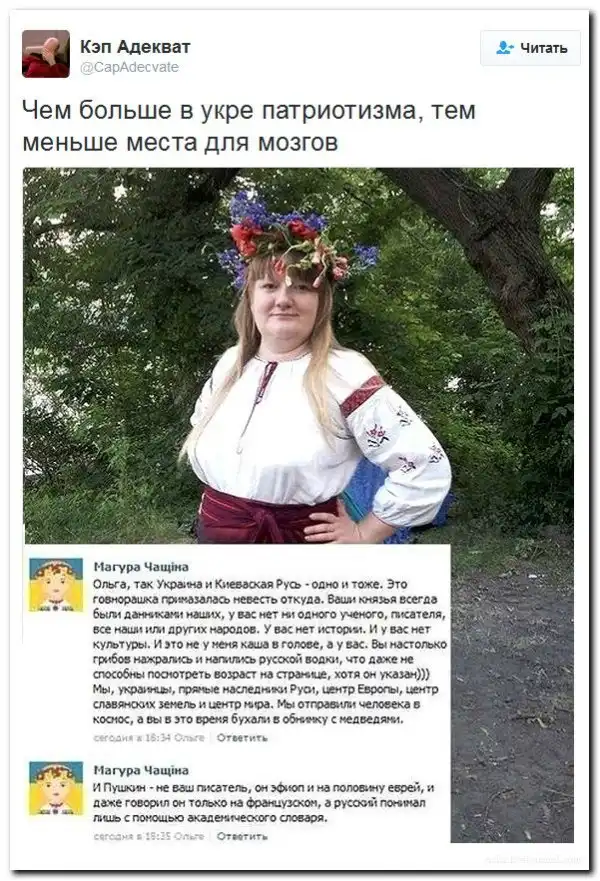 Поддерживаю! Человеку который поддался пропаганде нужно объяснять примерами, иначе никак. А вообще у большинства людей России в головах п*здец полный. 54/6 это п*здец товарищи