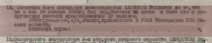По номеру награды удалось установить имя солдата - Касимов Рахимтай, 1905 года рождения, казах, санитар 3 батальона, 1269 Стрелкового полка, 382 Стрелковой дивизии.