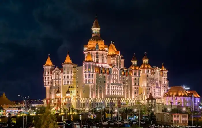 Гостиничный комплекс «Богатырь». На фоне местного парка развлечений, я сначала подумал что, это здание какого-то Диснейленда. Наверное хозяева много отдыхали на противоположном берегу Черного моря. Там есть и отель Красная площадь. Наверное, поставлю минус. Все в кучу в одном месте это колхоз, считаю.