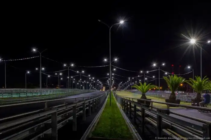 Перенесемся в послезакатное время. Честно говоря, я разочарован. В районе 21-30 темнота в районе основных объектов огорчает. Подсветку отключают совсем после окончания шоу фонтанов.
