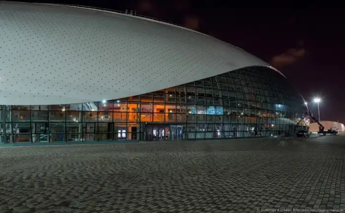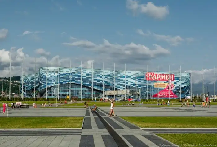 Добрался до Большого ледового дворца. Сейчас это домашняя арена ХК «Сочи». Здание-капелька сразу мне напомнило пекинскую оперу!