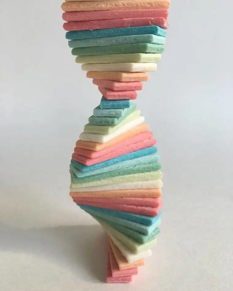 Художник Адам Хиллман любит наполнять свой инстаграм многоцветными композициями, в которые складывает в строгом порядке конфеты, карандаши, лапшу, жвачку или детали лего.