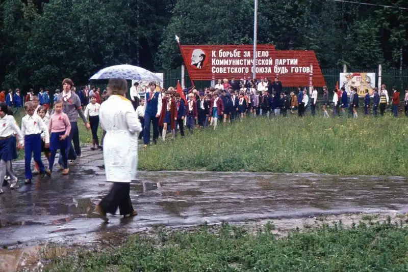 Как известно, в СССР каждое лето родители сливали детей в пионерские лагеря. Иногда на все три смены. Некоторые детки купались в этом счастье, а для некоторых жизнь в бараке по распорядку была жизнью в бараке, казармой и тюрьмой. Снимки, которые вы видите, сделаны в день заезда новой смены в Краснознаменный пионерский лагерь "Елочка" ВНИИЖТ, Московская обл., Наро-Фоминский р-н, примерно в 1983-85 годах.