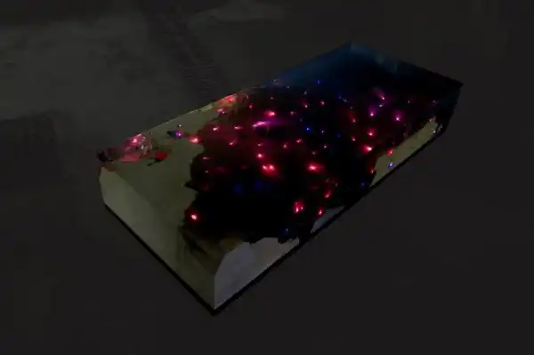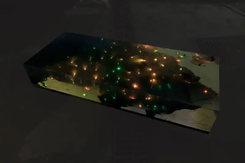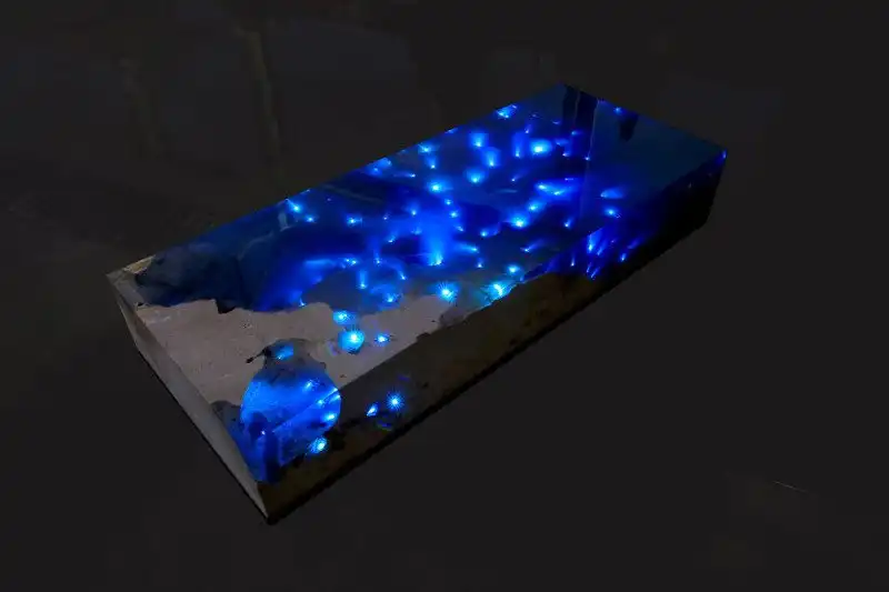 Хотите, чтобы в вашей комнате были одновременно море и звезды? Александру Чаплину удалось соединить два эти понятия и "одомашнить" их... с помощью этого стола! Необычный мрамор для него он привез с острова Ангилья, а затем оборудовал стол целой электросистемой с целью заставить его сиять, как в звездную ночь. С помощью встроенной wifi-системы этот кусочек Карибского моря можно включать в удаленном режиме!