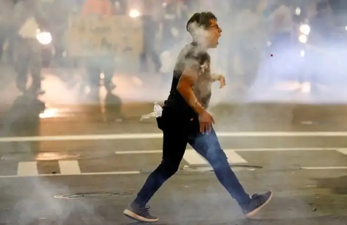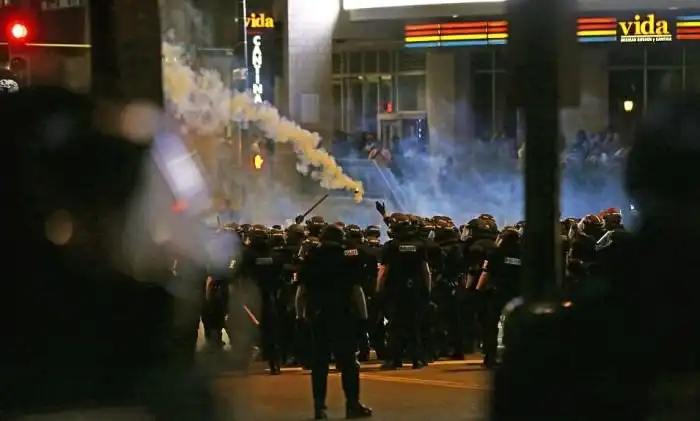 Протестующие забрасывали правоохранителей камнями, бутылками и петардами, били стекла, устраивали поджоги, нападали на журналистов. Полиция ответила слезоточивым газом и дубинками. В город введена Национальная гвардия, помощь полиции оказывают силы патрульно-постовой службы. Раненный демонстрант находится в критическом состоянии и подключен к аппарату жизнеобеспечения. Полиция сообщает о 12 раненных сотрудниках.