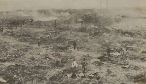 «Я поднялся на небольшой холм, чтобы окинуть город взглядом. Он был сожжен. Все было в маленьких кострах», вспоминает фотограф в своем интервью в 1962 году.