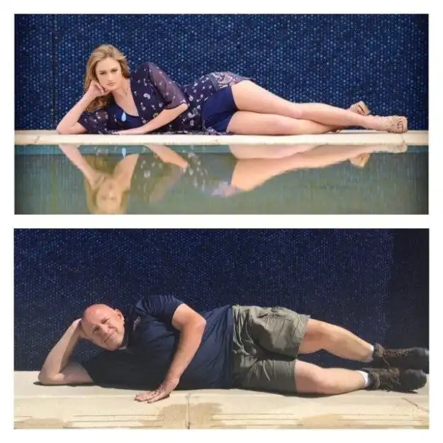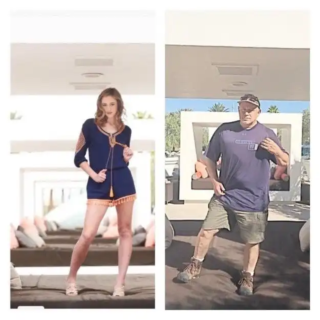 После того как студентка колледжа Кендел Диварко одержала победу в фотоконкурсе и получила в качестве приза модельную фотосессию в Лас-Вегасе, ее веселый отец решил немного потроллить дочь. Мужчина поселился в том же отеле и сделал свои снимки в тех же местах и в тех же позах, где фотографировалась Кендел. Стоит отметить, что его вариант получился более эффектным и запоминающимся)